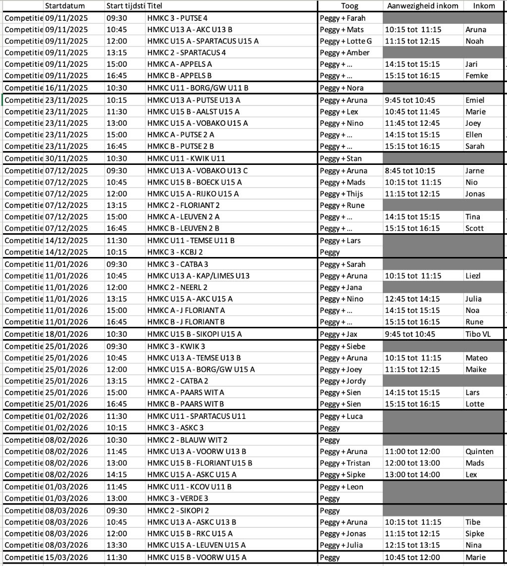 Als je naam op het schema voorkomt en je kan niet aanwezig zijn, gelieve onderling te wisselen zodat alles vlot blijft verlopen.